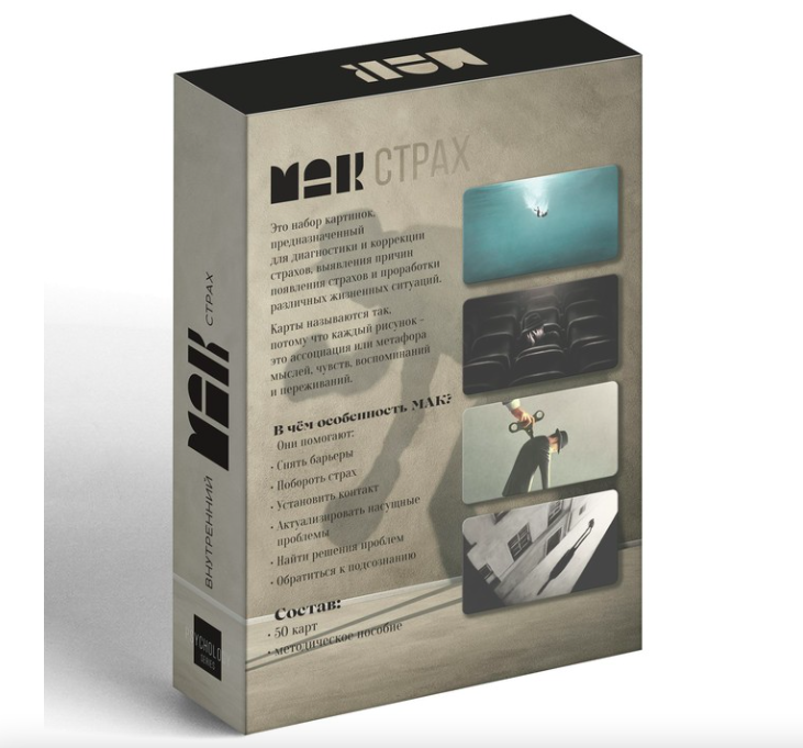 Метафорические ассоциативные карты (МАК) – это набор карточек для диагностики и коррекции страхов, выявления причин их появления и проработки различных жизненных ситуаций. Каждый рисунок на картах даёт ассоциацию или метафору мыслей, чувств, воспоминаний и переживаний. Колода поможет преодолеть страхи, взглянуть на них с другой стороны, начать жить и радоваться каждому дню.