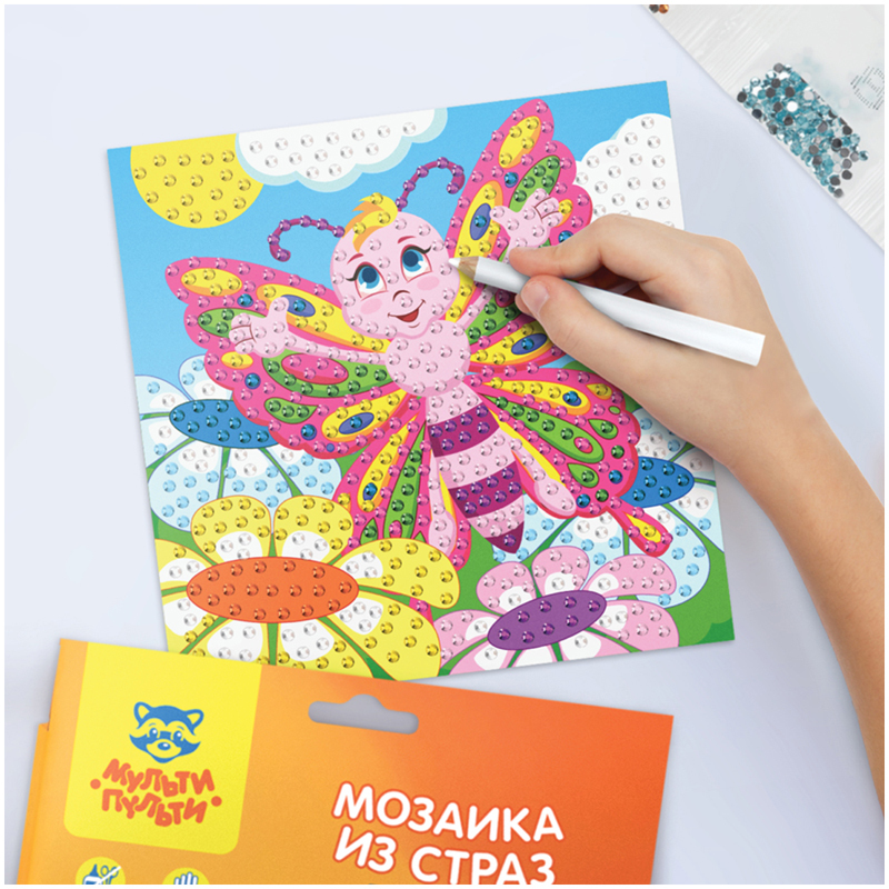 Мозаика из страз «Мульти-Пульти» понравится детям разного возраста. Техника работы настолько проста, что ребенок без труда сделает поделку самостоятельно. Размер: 15*15 см.
