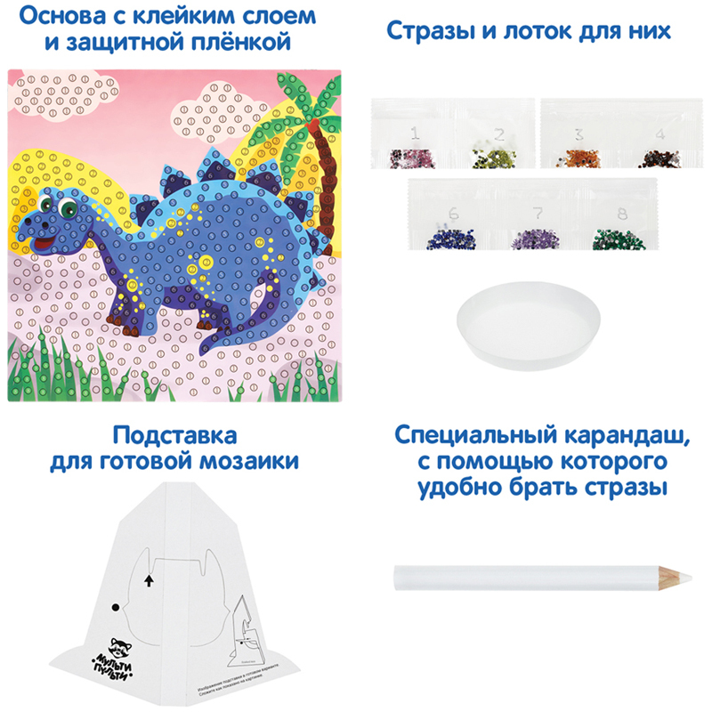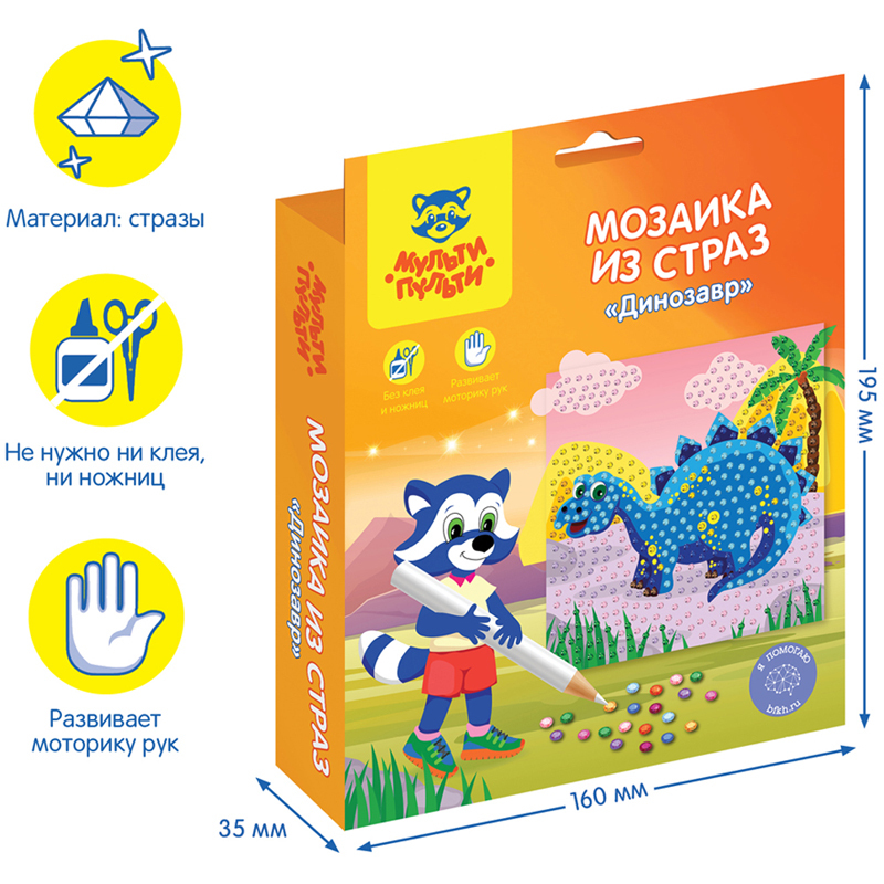 Мозаика из страз «Мульти-Пульти» понравится детям разного возраста. Техника работы настолько проста, что ребенок без труда сделает поделку самостоятельно. Размер: 15*15 см.