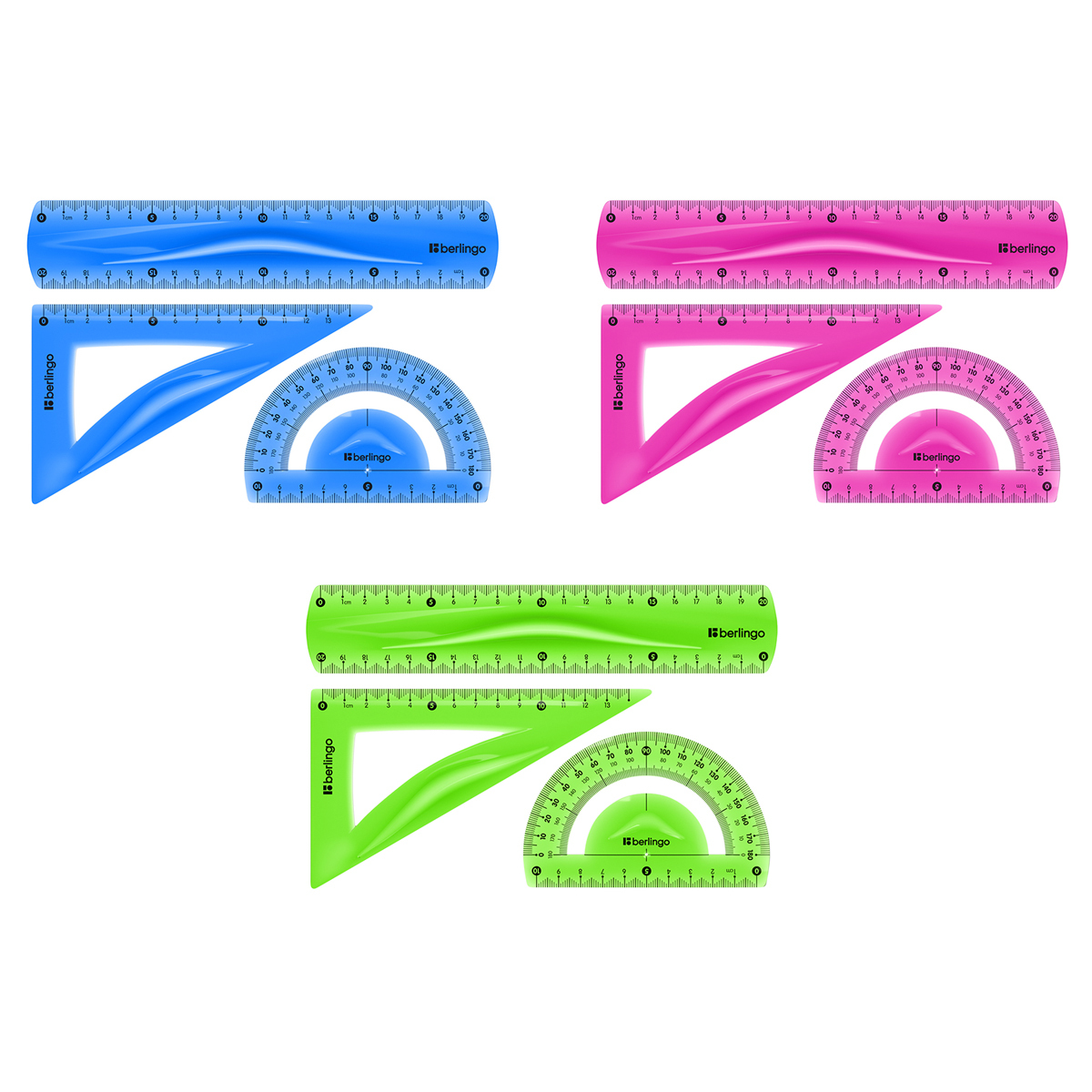 Набор чертёжный Berlingo гибкий, ударопрочный. В него входят: линейка 20 см, треугольник 30°, 14 см, транспортир 10 см, 180°. Индивидуальная упаковка в пакет с европодвесом.
