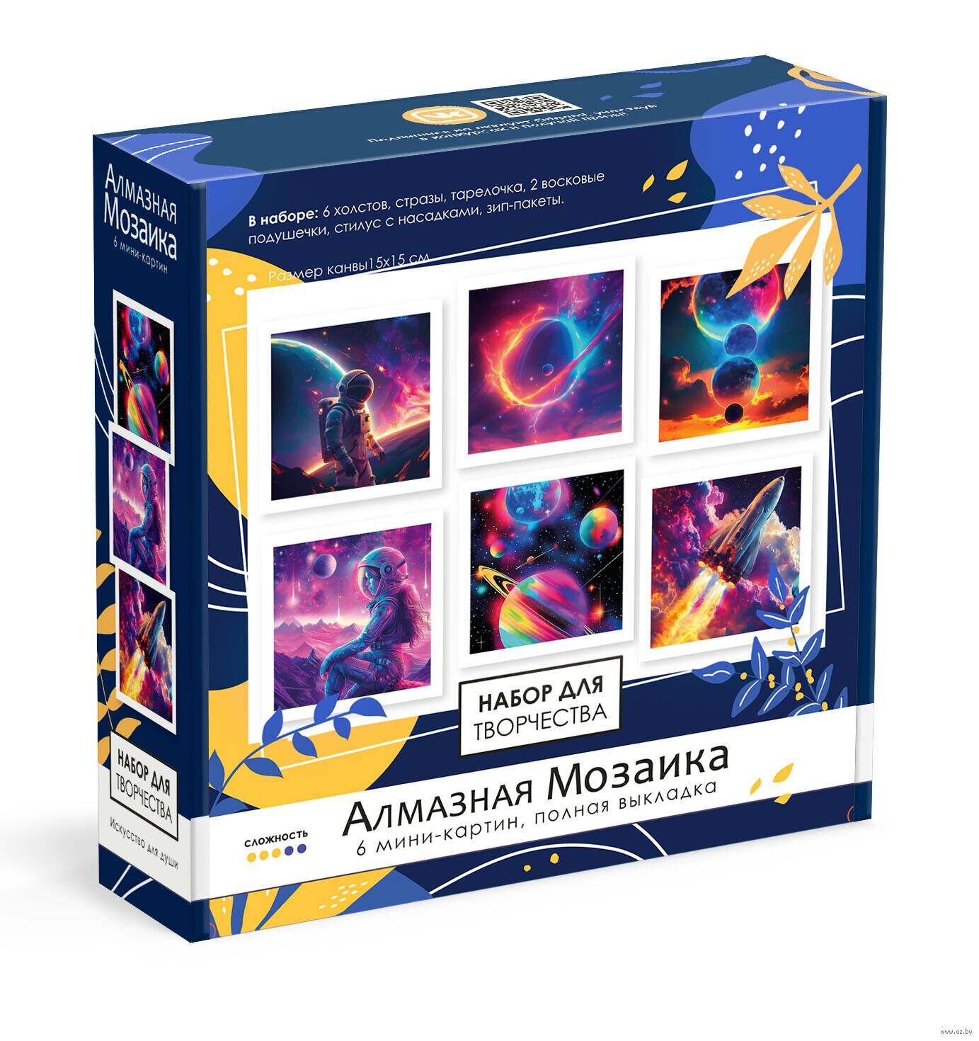 Наборы для творчества позволят вам создать уютное и теплое пространство в любой комнате. Набор подходит как для опытных мастеров, так и для новичков, желающих испытать радость творчества и достичь значительного результата. Техника создания красочных, кристальных и многогранных из маленьких блестящих их камушков, развивает мелкую моторику. Простой вид творчества требует лишь аккуратности и усидчивости.