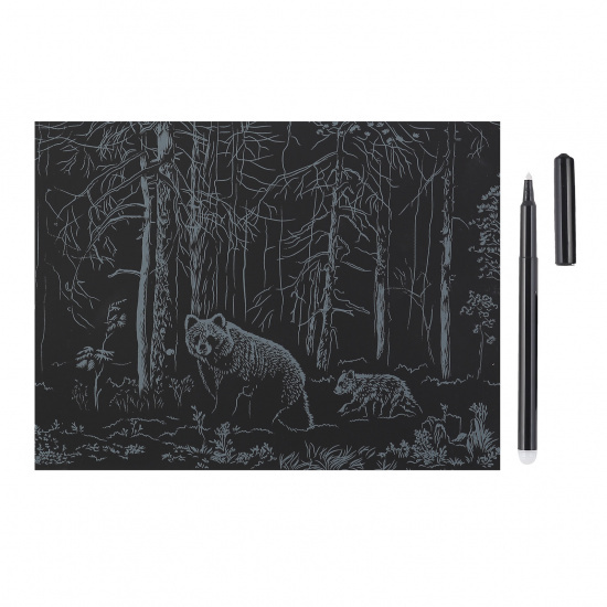 Гравюра- особый вид графического искусства. Сцарапывая верхний слой гравюры спеециальным штихелем, входящим в набор, ребенок может самостоятельно создать настоящее произведение искусства и почуствовать себя гравером. Готовую гравюру можно вставить в упаковку-рамку. Размер гравюр 18*24 см.