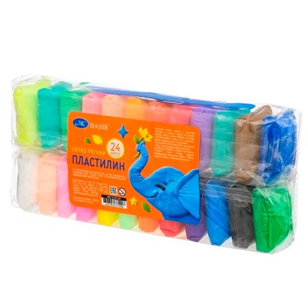 Супер лёгкий пластилин: "ВЕСЁЛЫЕ ЗВЕРЯТА" увлекательный набор для воплощения детских творческих задумок и фантазий; без запаха, не липнет к рукам, в полиэтиленовой упаковке, 24 цвета+инструменты для лепки, вес одной штуки 11 гр.