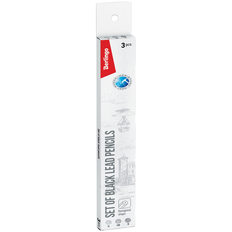 Набор из 3 чернографитных карандашей из липы, с заточкой разной твердости. Подходит для черчения и рисования. Диаметр стержня 2мм, твердость H, HB, B, шестигранной формы, с логотипом на корпусе. Трехцветная окраска корпуса. Упаковка в картонную коробку с европодвесом