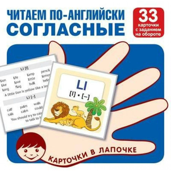 Набор карточек "Читаем по-английски: согласные" поможет запомнить, как правильно читать и произносить английские буквы и звуки: как по отдельности, так и в буквосочетаниях. Дети выучат новые слова, повторят уже знакомые. Тематические картинки сделают процесс обучения более увлекательным.На лицевой стороне каждой карточки приведены согласная буква или буквосочетание и транскрипция соответствующих звуков, а также ассоциативная картинка для запоминания. На обороте размещены примеры слов и предложений с заданными буквами и буквосочетаниями для отработки навыков чтения. Детям предлагается выполнить задание - прочитать их.Пособие рекомендовано для родителей, педагогов и самостоятельного изучения, подходит для индивидуальных и групповых занятий в качестве тренажёра по чтению.