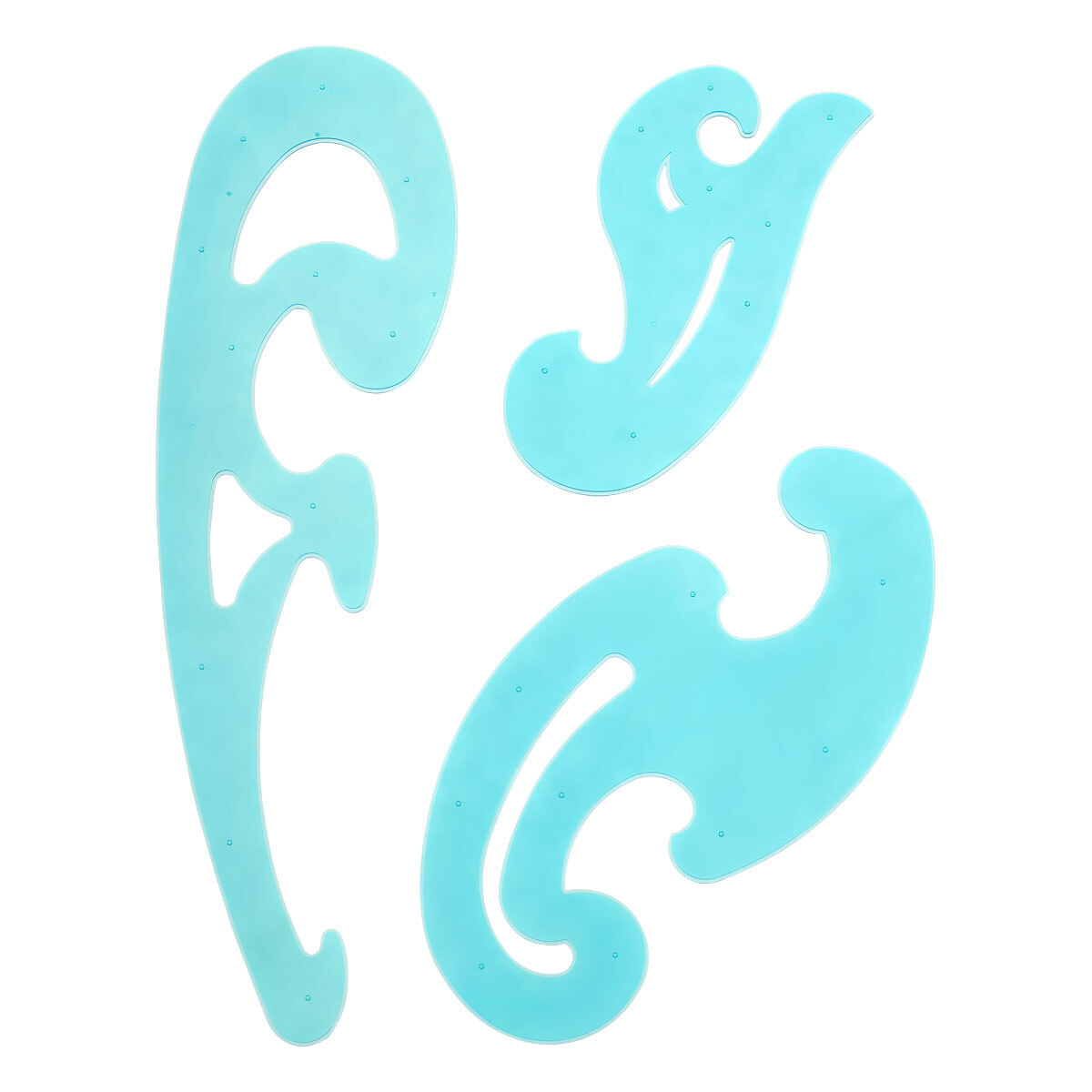 Набор лекал 25,17,12см. Используется для раскроя ткани и моделирования выкроек. Имеет тонкую грань для черчения тушью. Прозрачный тонированный.