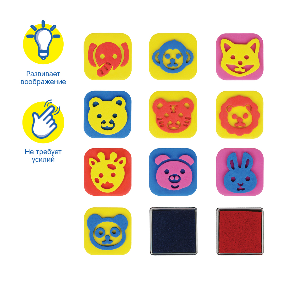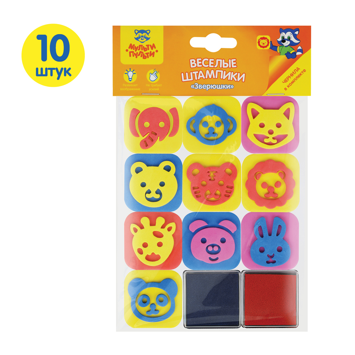 Набор штампов для творчества «Мульти-Пульти» серии «Зверюшки» вдохновит ребенка на воплощение творческих идей. В набор входит 10 штампов с изображениями животных, которые оценят малыши и два цвета чернил на водной основе: синие и красные. Штампы изготовлены из EVA-материала и подходят для многоразового использования. Чернила безопасны и легко смываются водой. Подходит для детей старше трёх лет.