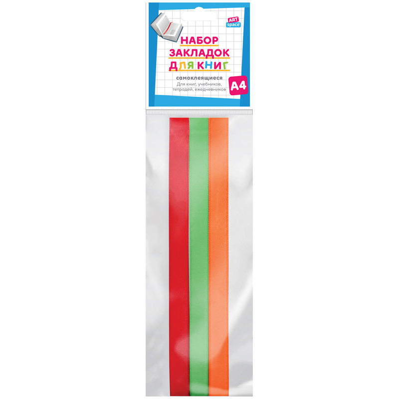 Набор закладок состоит из трех лент шириной 12 мм разных расцветок для изданий формата А4.