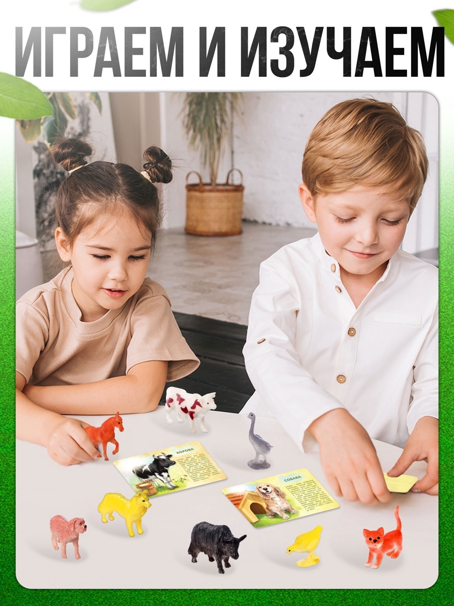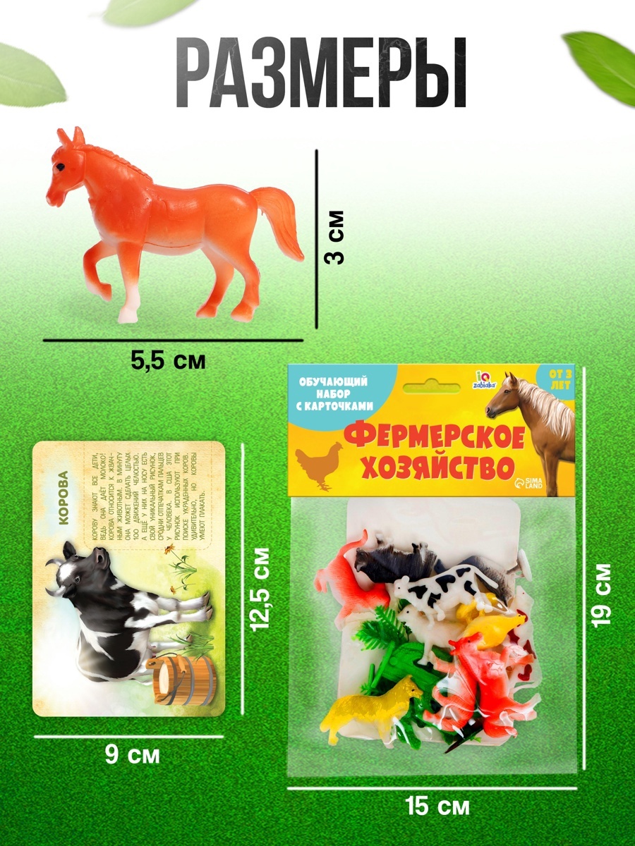 Набор животных с карточками «Фермерское хозяйство» — это отличный способ для детей от 3 лет познакомиться с домашними животными. В набор входит 10 ярких пластиковых фигурок животных, а также 9 карточек с их изображениями и краткими описаниями.