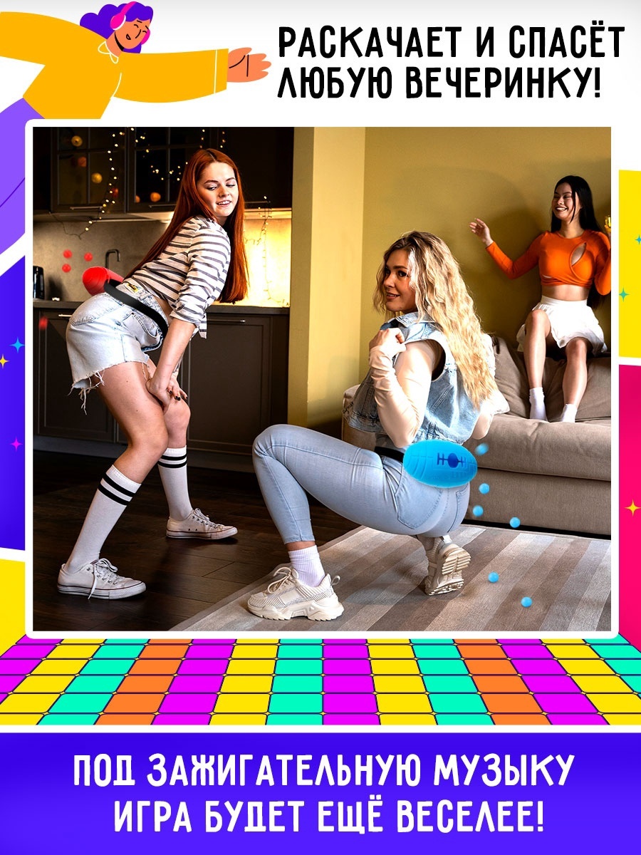 «Попотряс» — настольная игра для детей 6 лет. Разомнитесь как следует, ведь чтобы победить в этой игре, вам придётся виртуозно… трясти попой! Ваша задача — вытрясти из контейнеров за спиной как можно больше шариков. Хорошенько постарайтесь, ведь время ограничено, а ваши соперники стремятся вас обыграть, чтобы не заработать для своей команды усложнение!