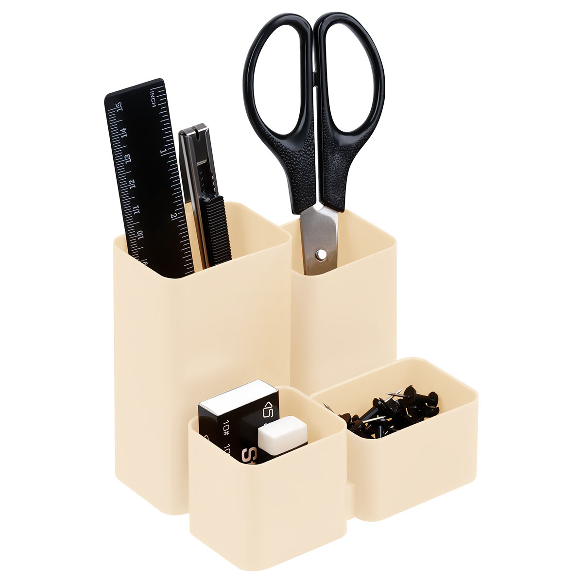 Настольная подставка "СТАММ" серии "Юниор" предназначена для хранения канцелярских принадлежностей. Компактная и устойчивая подставка имеет 4 отделения разной высоты. Изделие высотой 10,2 см и основанием 11,4*9,2 см изготовлено из качественного пластика. Поставляется без наполнения. Цвет изделия – бежевый.