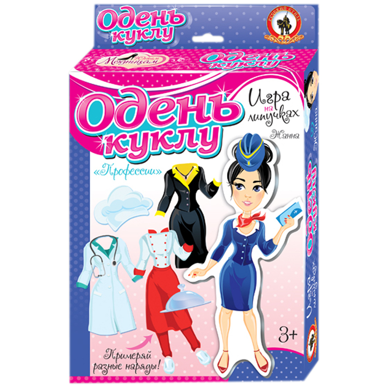 Набор для игры «Одень куклу» создан специально для юных модниц. Игра знакомит с разными профессиями, развивает фантазию и воображение. Подбирай одежду и головные уборы для куклы Жанны так, чтобы они соответствовали друг другу. А какая профессия тебе больше нравится?