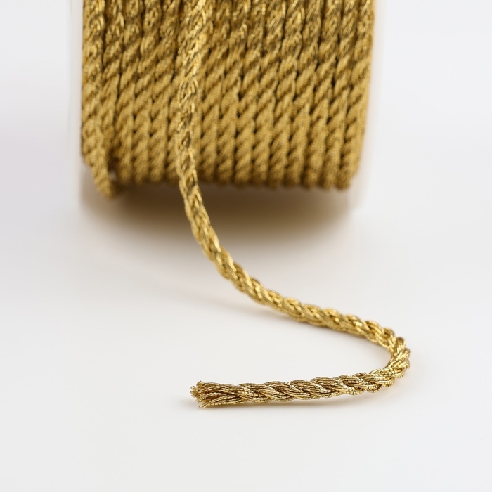 Нить для плетения из полипропилена и полиэстера обладает высокой прочностью и долговечностью. Золотистый цвет придаёт изделиям роскошный и праздничный вид. Подходит для украшения подарков, бирок, одежды, новогодних ёлочных игрушек, для плетения браслетов, а также для создания декора для дома.