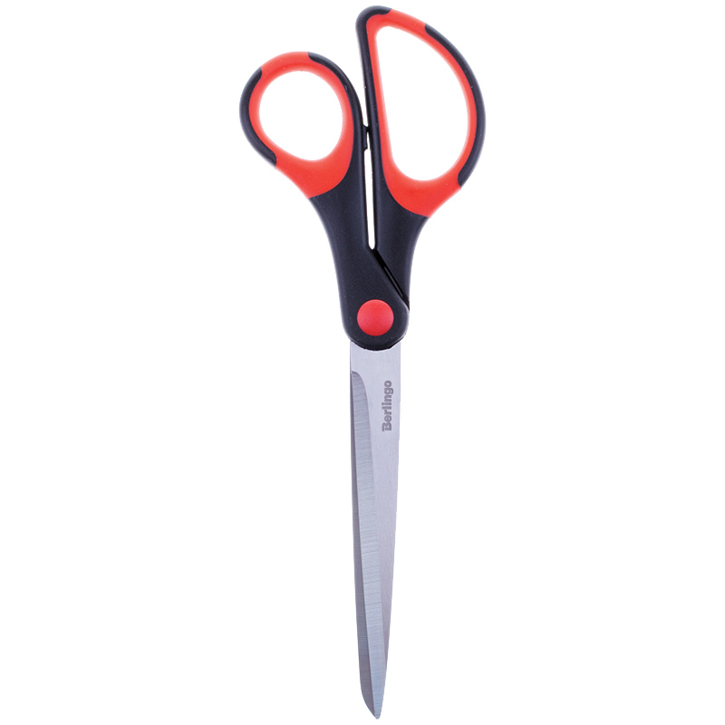 Ножницы для работы с бумагой, картоном, тканью и пленкой. Материал корпуса - нержавеющая сталь высокого качества. Пластиковые ручки с резиновыми вставками позволяют надежно фиксировать ножницы в руке. Длина ножниц-23 см. Упаковка - блистер с европодвесом.