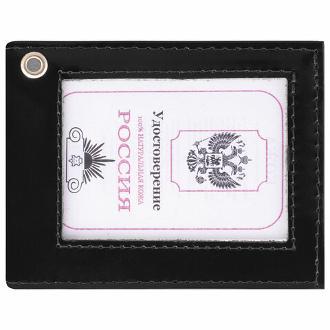 Модель выполнена из натуральной гладкой кожи черного цвета. Имеет один карман и окно на передней стенке обложки. Благодаря компактным размерам 10х83х105 мм удобно всегда носить с собой. Данный товар - сочетание доступной цены и отличного качества.