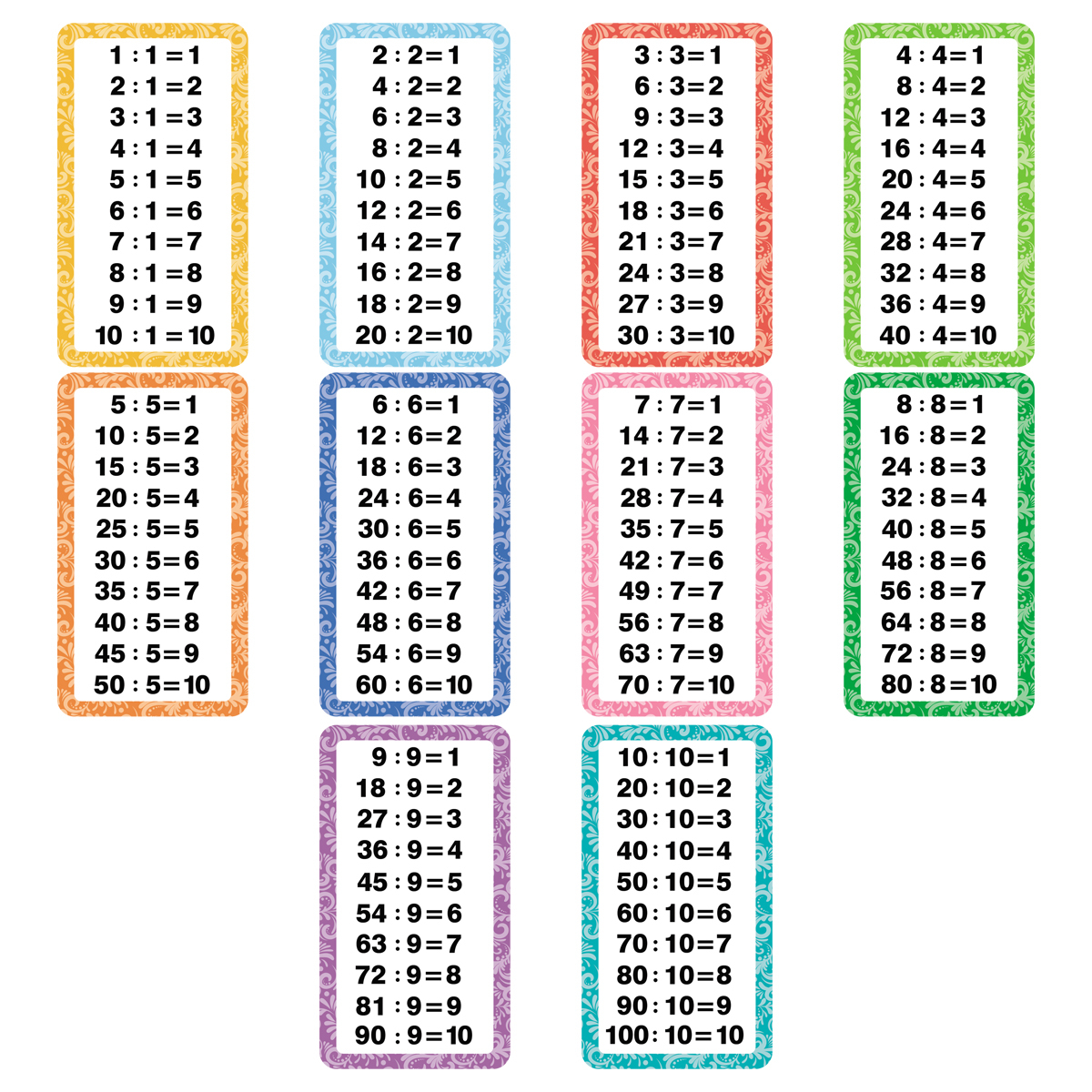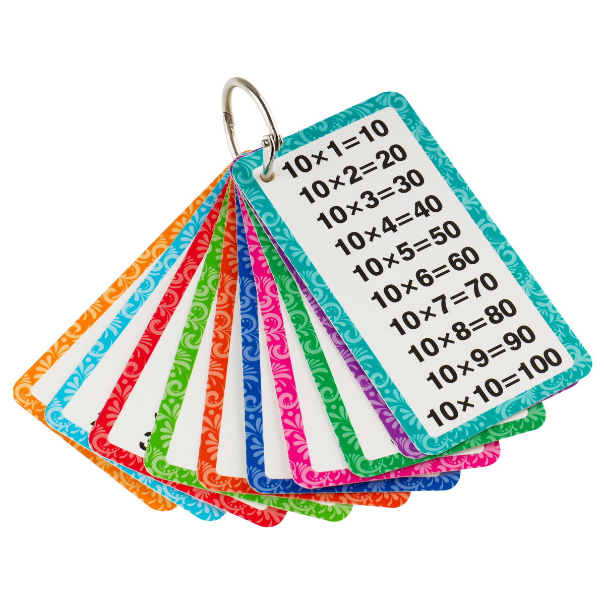 Карточки обучающие двусторонние: с одной стороны идет таблица умножения, с другой стороны - таблица деления. Карточки выполнены из плотного ламинированного картона, что придает им антивандальный вид. Размер карточек 10*5,5 см, имеют скругленные углы. Для того, чтобы карточки не потерялись и были всегда под рукой, они скреплены металлическим кольцом. Данные карточки способствуют быстрому запоминанию чисел, таблицы умножения и деления и станут отличным помощником школьнику не только дома, но и в школе. Сделайте процесс обучения более лёгким!
