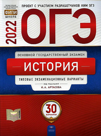 - 30 типовых экзаменационных вариантов, составленных в соответствии с проектом демоверсии КИМ ОГЭ по истории 2022 года;
