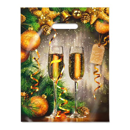 Пакет Новогодний ПЭ " Интерпак " с вырубной ручкой ПВД, 31*40см 60мкм Звон бокалов