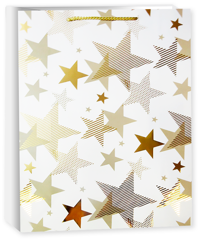 Пакет подарочный, Мириады звезд, Белый, Металлик, 23*18*8 см, 1 шт.