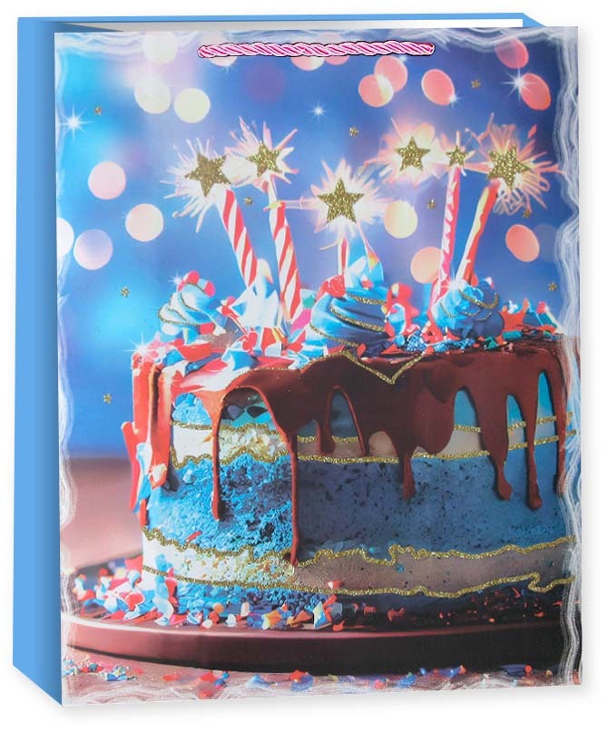 Пакет подарочный, Торт на День Рождения, Дизайн №4, с блестками, 40*31*12 см, 1 шт.