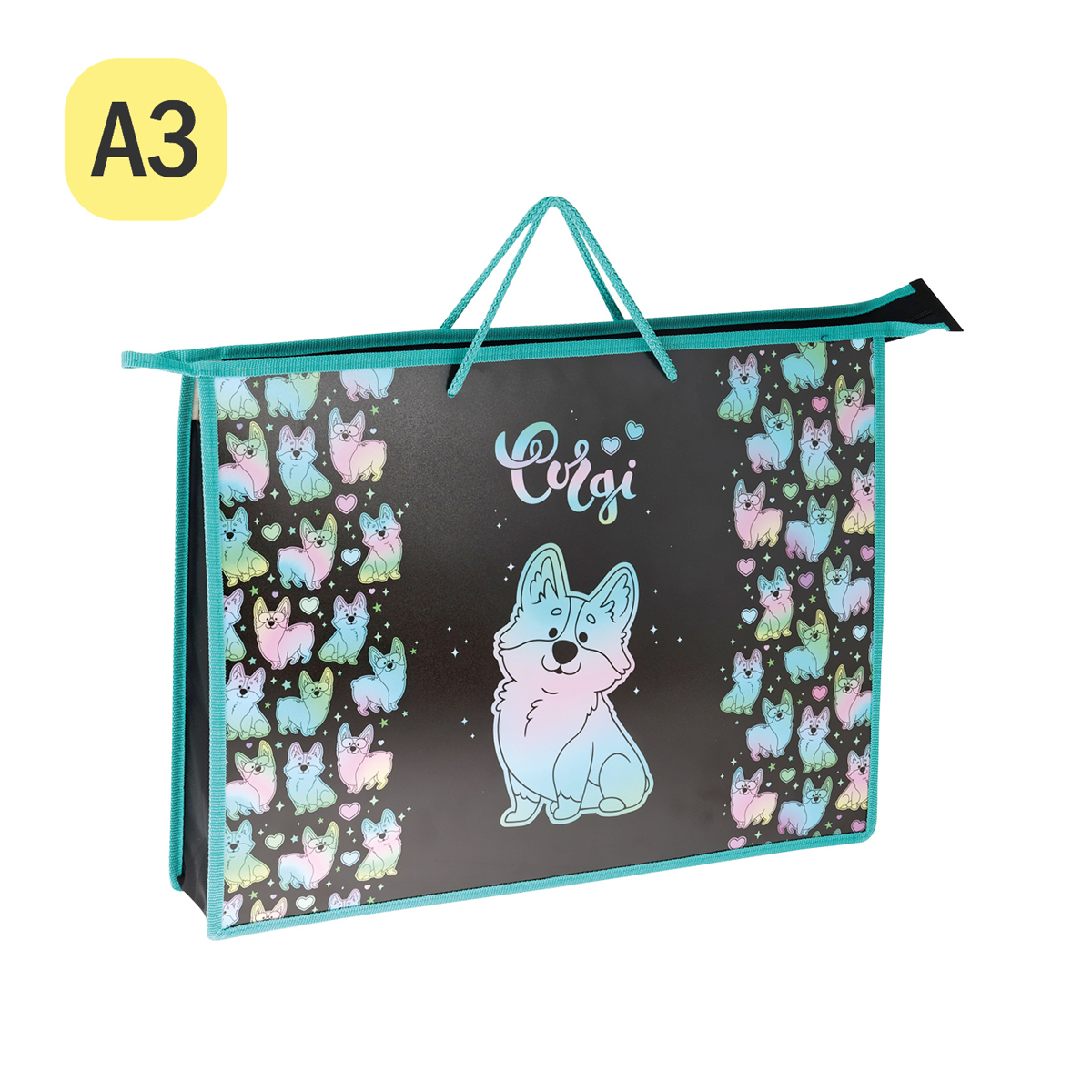 Папка для чертежей и рисунков на молнии ArtSpace Corgi формата А3 станет стильным помощником в учёбе и привлечёт внимание ярким дизайном. Изделие имеет одно отделение. Увеличенная глубина папки 70 мм позволит легко уместить стакан-непроливайку и все необходимые принадлежности для творчества. Застежка-молния сверху надежно защищает содержимое. Папка изготовлена из прочного пластика и ткани. Оригинальный дизайн с рисунком обязательно привлечёт внимание девочек.