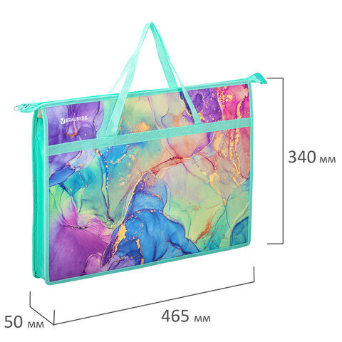 Практичная папка на молнии с ручками защитит чертежи, рисунки и другие художественные изображения от замятий и повреждений. Яркая и четкая печать дизайна с двух сторон. Застегивается на молнию. Ручки из тесьмы. Формат А3. Ширина папки 50 мм.