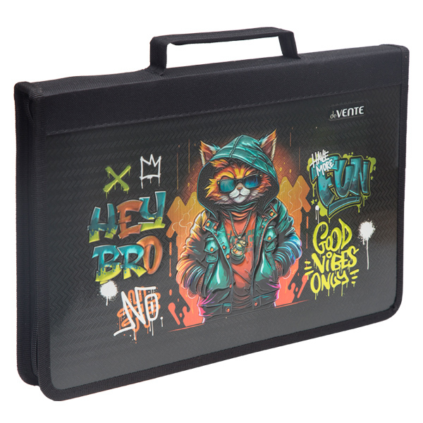 Папка текстильная для тетрадей, ИЗО и технологии на молнии, формат A4. Размер 337х230х30 мм. Материал: износостойкий водоотталкивающий 100% полиэстер, картон с покрытием из фольги с конгревным тиснением. Имеет одно большое отделение с внутренней системой фиксации канцелярских принадлежностей. Закрывается на молнию, надежно защищая принадлежности от попадания пыли и влаги.