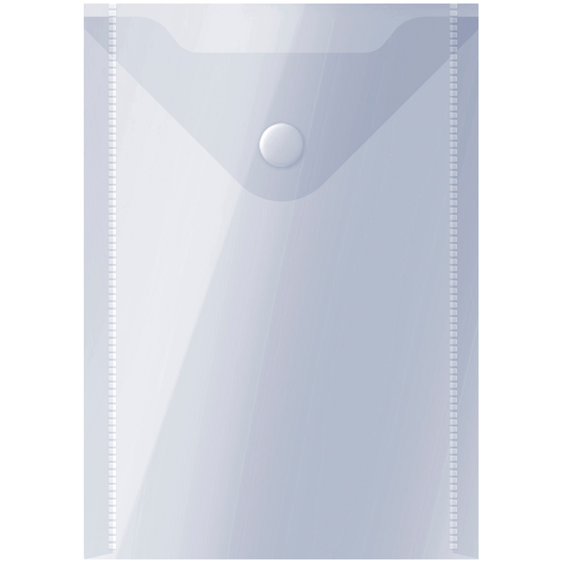 Папка-конверт плотно закрывается на кнопку. Кнопка рассчитана на ежедневное использование. Изготовлена из полупрозрачного пластика толщиной 150 мкм. Идеальное средство для транспортировки документов и различных мелких предметов.
