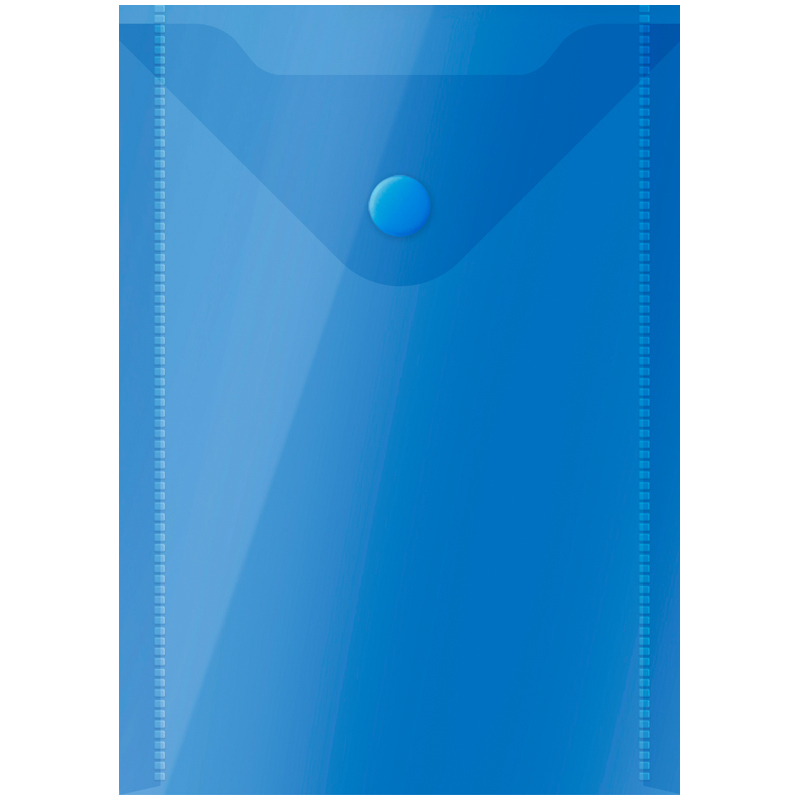 Папка-конверт плотно закрывается на кнопку. Кнопка рассчитана на ежедневное использование. Изготовлена из полупрозрачного пластика толщиной 150 мкм. Идеальное средство для транспортировки документов и различных мелких предметов.