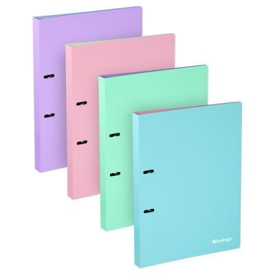 Папка на 2 кольцах Berlingo серии Haze формата А4 (310*250*24 мм) – отличный и стильный помощник для хранения документов с плотной обложкой с приятной soft-touch-фактурой. Толщина обложки – 600 мкм. Стильные пастельные цвета обложки и контрастные пастельные цвета внутренней поверхности. Папка изготовлена из высококачественного полипропилена с особой фактурой с эффектом soft-touch. Вместимость папки – 150 листов, ширина корешка – 24 мм. Кольцевой механизм с 2 кольцами диаметром 20 мм надежно держит перфорированные документы и документы, помещенные в файлы-вкладыши. Специальная D-форма колец помогает удобно и ровно хранить документы, которые могут быть выровнены по левому краю, благодаря боковой вертикальной стенке кольца. Специальные формовые отверстия в обложке служат для надёжного защелкивания папки в сложенном виде, предотвращают случайное открытие обложки и замятие документов внутри при хранении и транспортировке. Предназначена для хранения документов. На внутренней стороне обложки оснащена плотным прозрачным карманом для удобного хранения мелочей: ручки, заметок, визиток, дисков, флешек и др. Упакована в индивидуальный прозрачный пакет по форме. Поставляется в специальных шоу-боксах в качестве промежуточной упаковки.• Вместимость листов: 150;• Формат: А4;• Цвет: ассорти;• Ширина корешка: 24 мм.