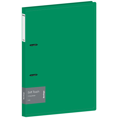 Папка на 2-х D-кольцах Berlingo серии Soft Touch формата А4 - стильный аксессуар для офиса и учёбы с плотной обложкой с приятной софт-тач фактурой. Изготовлена из высококачественного полипропилена толщиной 700 мкм с особой фактурой с эффектом софт-тач. Ширина корешка составляет 24 мм. Ширина папки составляет 250мм. Папка оснащена стильными черными кольцами, которые крепятся на заднюю стенку. Специальная D-форма колец диаметром 20 мм помогает удобно и ровно хранить документы, которые могут быть выровнены по левому краю, благодаря боковой вертикальной стенке кольца. Вместимость папки – 150 листов. Специальные формовые отверстия в обложке служат для надежного защелкивания папки в сложенном виде, предотвращают случайное открытие обложки и замятие документов внутри при хранении и транспортировке. На внутренней стороне обложки папка оснащена плотным прозрачным карманом для удобного хранения мелочей: ручки, заметок, визиток, дисков, флешек и др. Корешок папки оклеен специальным стикером для подписи содержимого, что позволяет легко и удобно организовывать документы на полке. Размер папки составляет 310*250*24 мм. Упакована в индивидуальный прозрачный пакет по форме. Папка оснащена съемным стикером с выходной информацией и штрих-кодом.• Вместимость, в листах: 150;• Формат: А4;• Цвет: зеленый;• Ширина корешка: 24 мм
