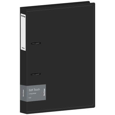 Папка на 2-х D-кольцах Berlingo серии Soft Touch формата А4 - стильный аксессуар для офиса и учёбы с плотной обложкой с приятной софт-тач фактурой. Изготовлена из высококачественного полипропилена толщиной 700 мкм с особой фактурой с эффектом софт-тач. Увеличенная ширина корешка 40 мм, что позволяет хранить до 250 листов. Ширина папки составляет 250мм. Папка оснащена стильными черными кольцами, которые крепятся на заднюю стенку. Специальная D-форма колец диаметром 20 мм помогает удобно и ровно хранить документы, которые могут быть выровнены по левому краю, благодаря боковой вертикальной стенке кольца. Вместимость папки – 250 листов. Специальные формовые отверстия в обложке служат для надежного защелкивания папки в сложенном виде, предотвращают случайное открытие обложки и замятие документов внутри при хранении и транспортировке. На внутренней стороне обложки папка оснащена плотным прозрачным карманом для удобного хранения мелочей: ручки, заметок, визиток, дисков, флешек и др. Корешок папки оклеен специальным стикером для подписи содержимого, что позволяет легко и удобно организовывать документы на полке. Дополнительный стикер в комплекте. Размер папки составляет 310*250*40 мм. Упакована в индивидуальный прозрачный пакет по форме. Папка оснащена съемным стикером с выходной информацией и штрих-кодом.• Вместимость, в листах: 250;• Формат: А4;• Цвет: черный;• Ширина корешка: 40 мм