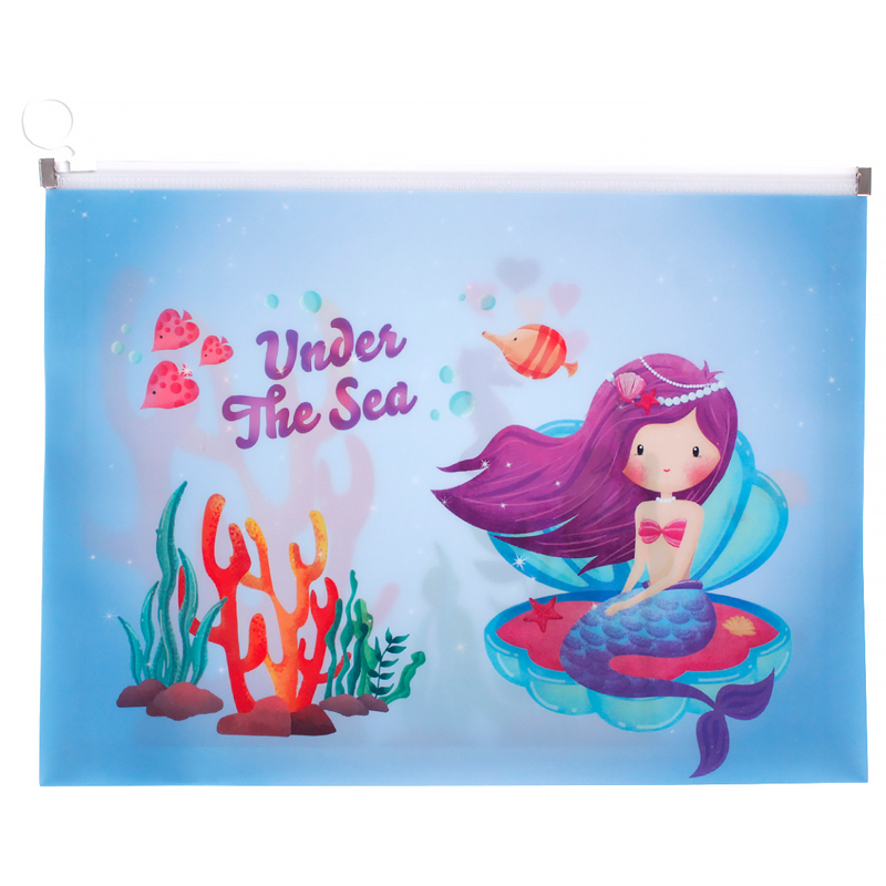 Папка пластиковая А4 с замком типа "Zip lock" серии "Русалки". Папка сделана из пластика 180мкм и содержит полноцветные принты на двух сторонах. Отлично подходит для хранения и транспортировки документов. Папка прекрасно сочетается с другими товарами коллекционной серии "Русалки".