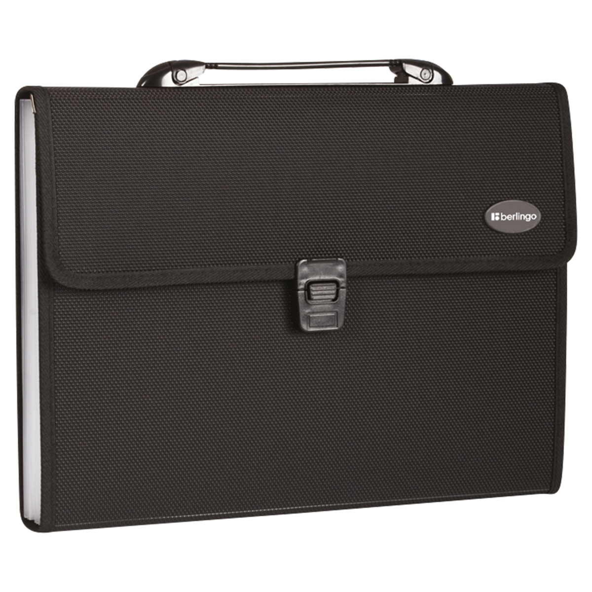 На замке. Укрепленная ручка. Материал - жесткий пластик. 13 отделений используется для хранения и перевозки большого количества документов, сгруппированных по темам. Встроенный индексный разделитель.