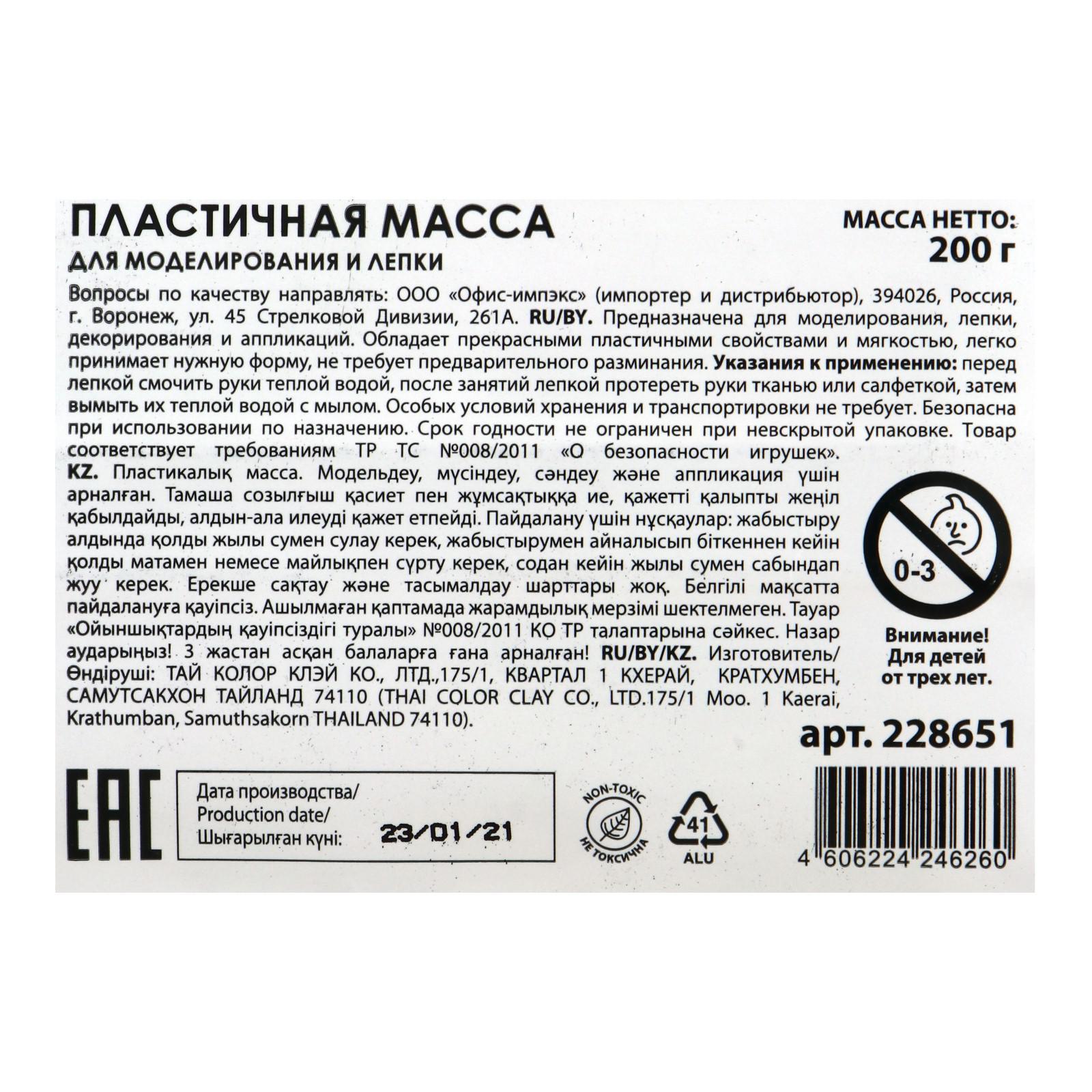 Паста (масса) ОСТРОВ СОКРОВИЩ для моделирования и лепки отлично подойдет для лепки дома, в школе, художественных студиях и для профессионального использования. Предназначена для изготовления объемных поделок, декорирования, аппликаций.Масса для моделирования и лепки схожа по своим качествам с глиной. Отличается легкостью в работе: очень мягкая и пластичная, имеет приятный запах, не липнет к рукам, не требует тепловой обработки, затвердевает на воздухе в течение 12 часов.Масса для лепки ОСТРОВ СОКРОВИЩ белого цвета фасовкой 200 грамм упакована в герметичную фольгированную упаковку, что позволяет хранить товар в течение длительного времени. Масса очень податлива: моделируется руками, пластична, легко лепится, раскатывается, режется, принимает любую форму. При необходимости можно использовать инструменты. Чтобы избежать появление трещин на изделии после застывания, необходимо работать с массой влажными руками. Затвердевает на воздухе, после высыхания становится очень прочной, не усаживается.Готовое изделие можно расписывать красками и декорировать в различных техниках. Хранить массу необходимо в герметичной емкости.Перед началом работы необходимо смочить руки в теплой воде и размять массу мокрыми руками. В процессе лепки для размягчения массы можно использовать воду.Основной состав: целлюлозное волокно, вода, гидроксильный полимер, красящие пигменты.