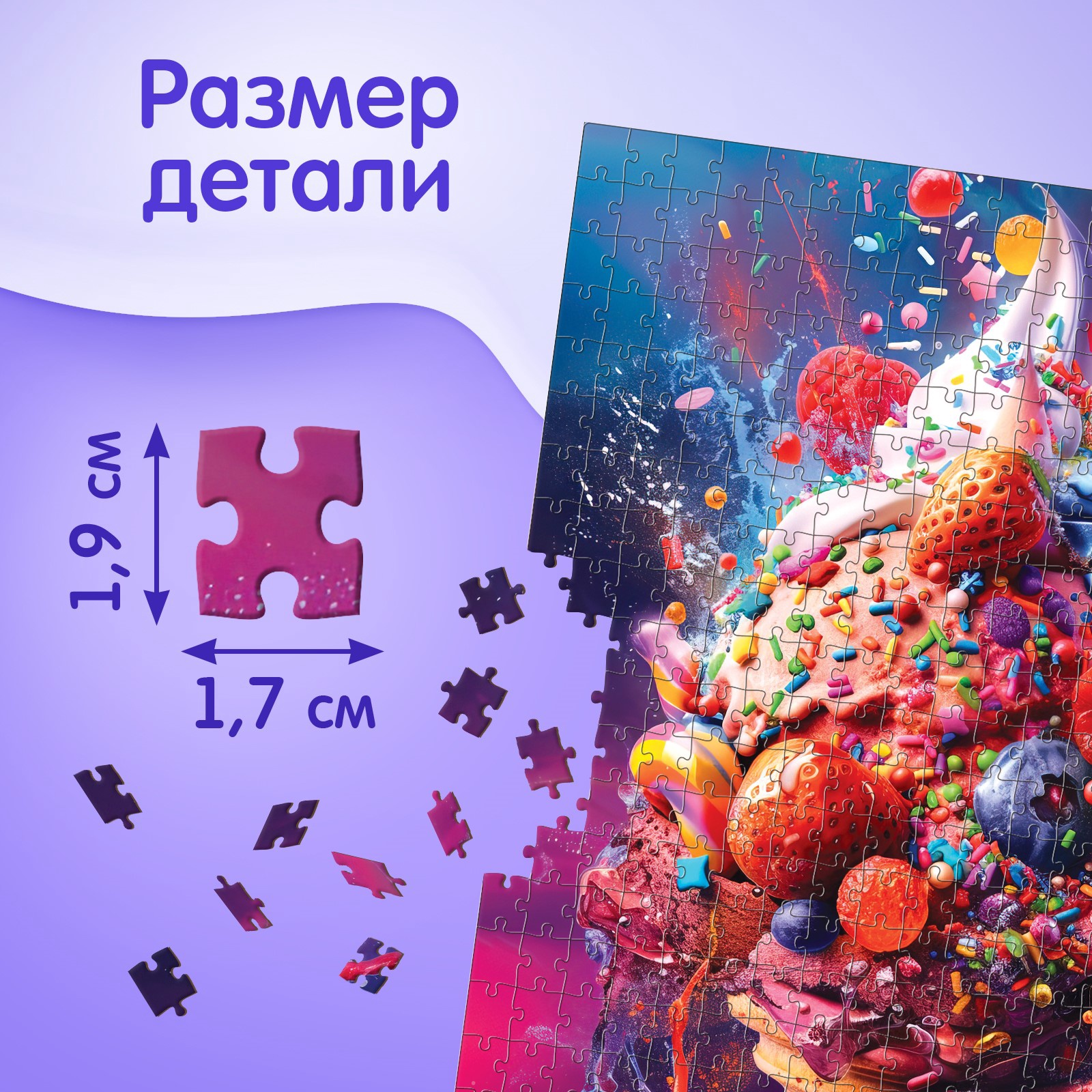 Размер одной детали: 1,9 × 1,7 см.