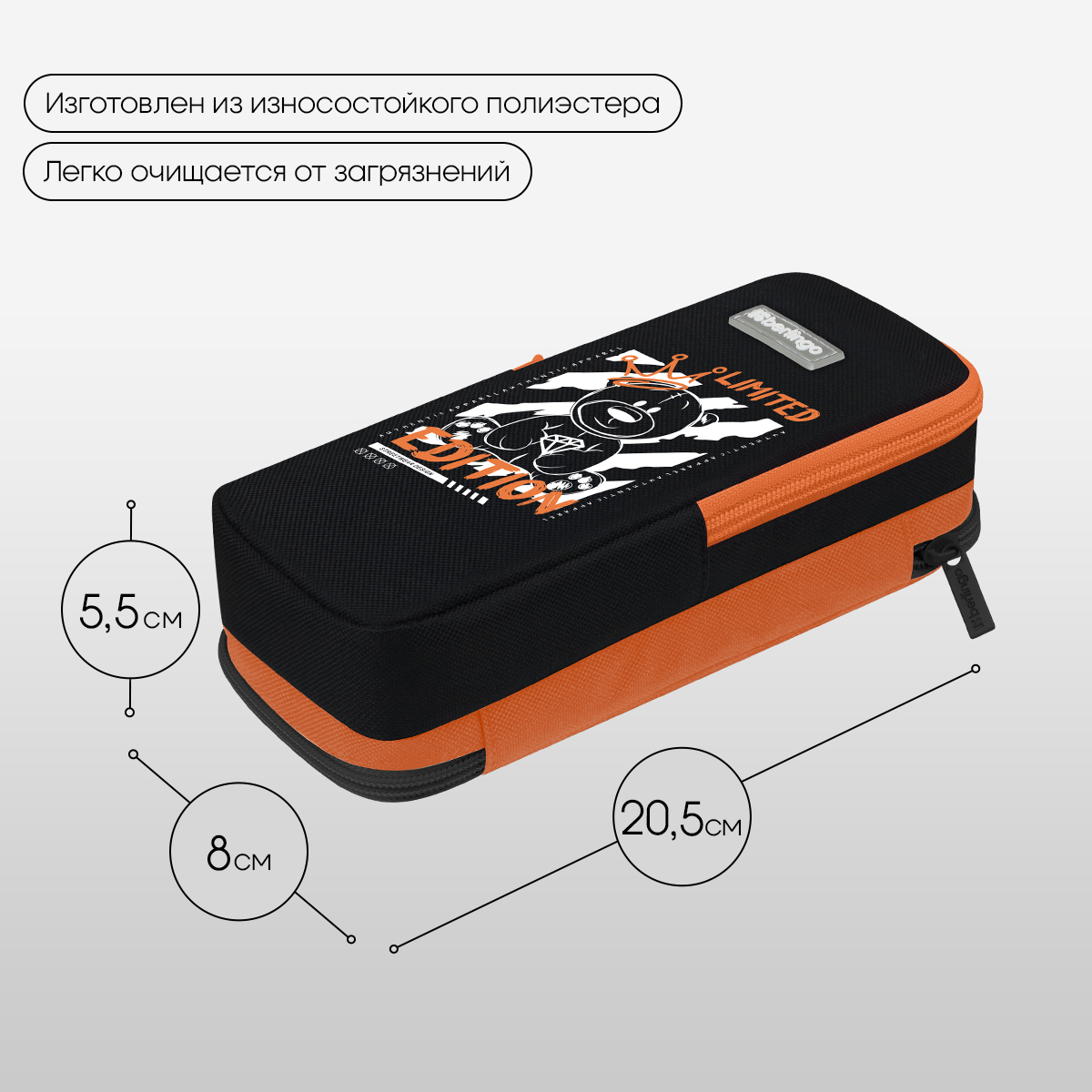 Пенал-футляр школьный мягкий Berlingo размером 205*80*55 мм имеет два отделения. Материал лицевой и внутренней поверхности – полиэстер. На откидной части есть небольшой кармашек для точилки и ластика. В ней также спрятан магнит для удобства использования в открытом виде. Во втором отделении находится специальный органайзер для хранения канцтоваров. Поставляется без наполнения. Индивидуальная упаковка - пакет.