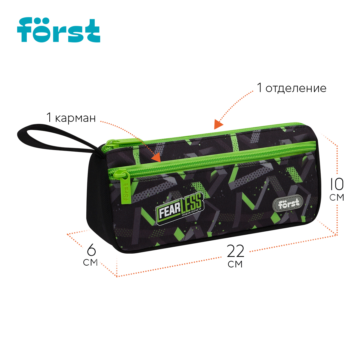 Пенал-косметичка Först из полиэстера с одним отделением и боковой петлей для ношения в руках. Модель имеет дополнительный вместительный карман на молнии. Упакован в индивидуальный пакет. Поставляется без наполнения.