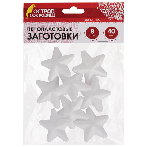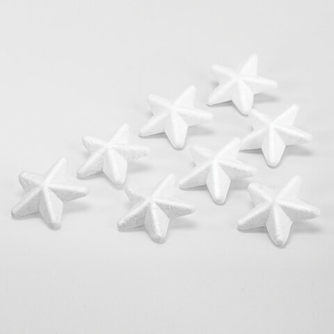 Предоставляют безграничное число возможностей для реализации самых разнообразных творческих идей. Изготовлены из пенопласта белого цвета. В наборе 8 заготовок в форме звёзд. Предназначены для детей от 3 лет. Размер 40х40 мм. Поставляются в пакете с европодвесом.