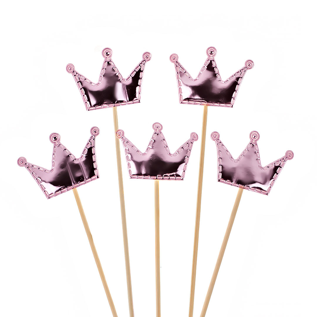 Пики Топперы, Короны, Розовый, Металлик, 12 см, 5 шт.