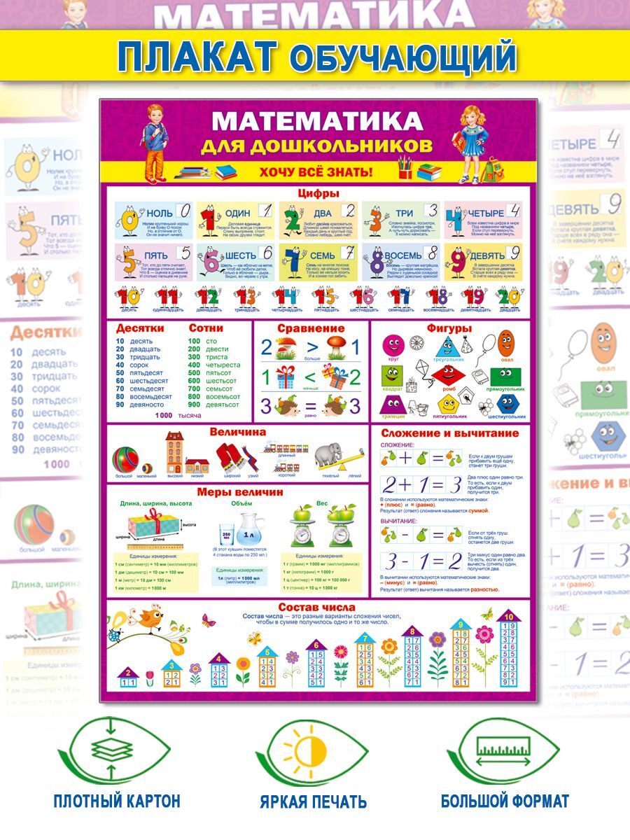 Плакат 0-02-518 Математика для дошкольников И 46070
