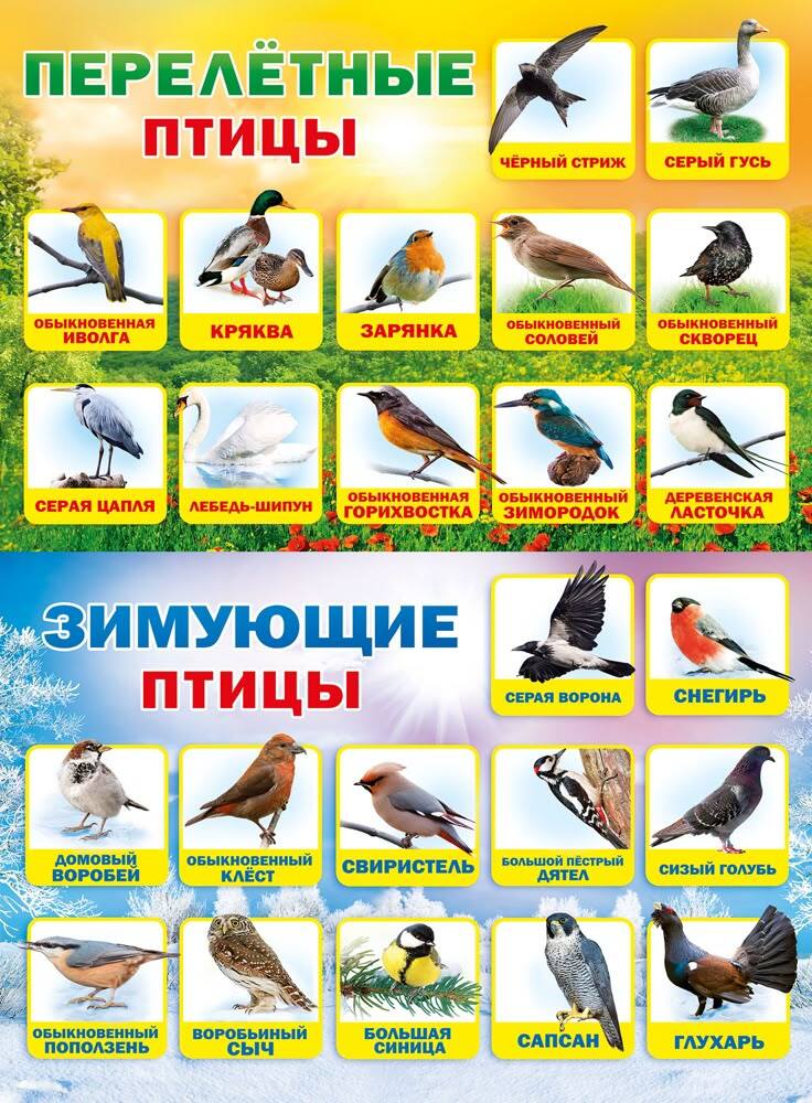 Плакат содержит информацию о перелетных и зимующих птицах, что позволит вашему ребенку расширить свои знания о мире природы.