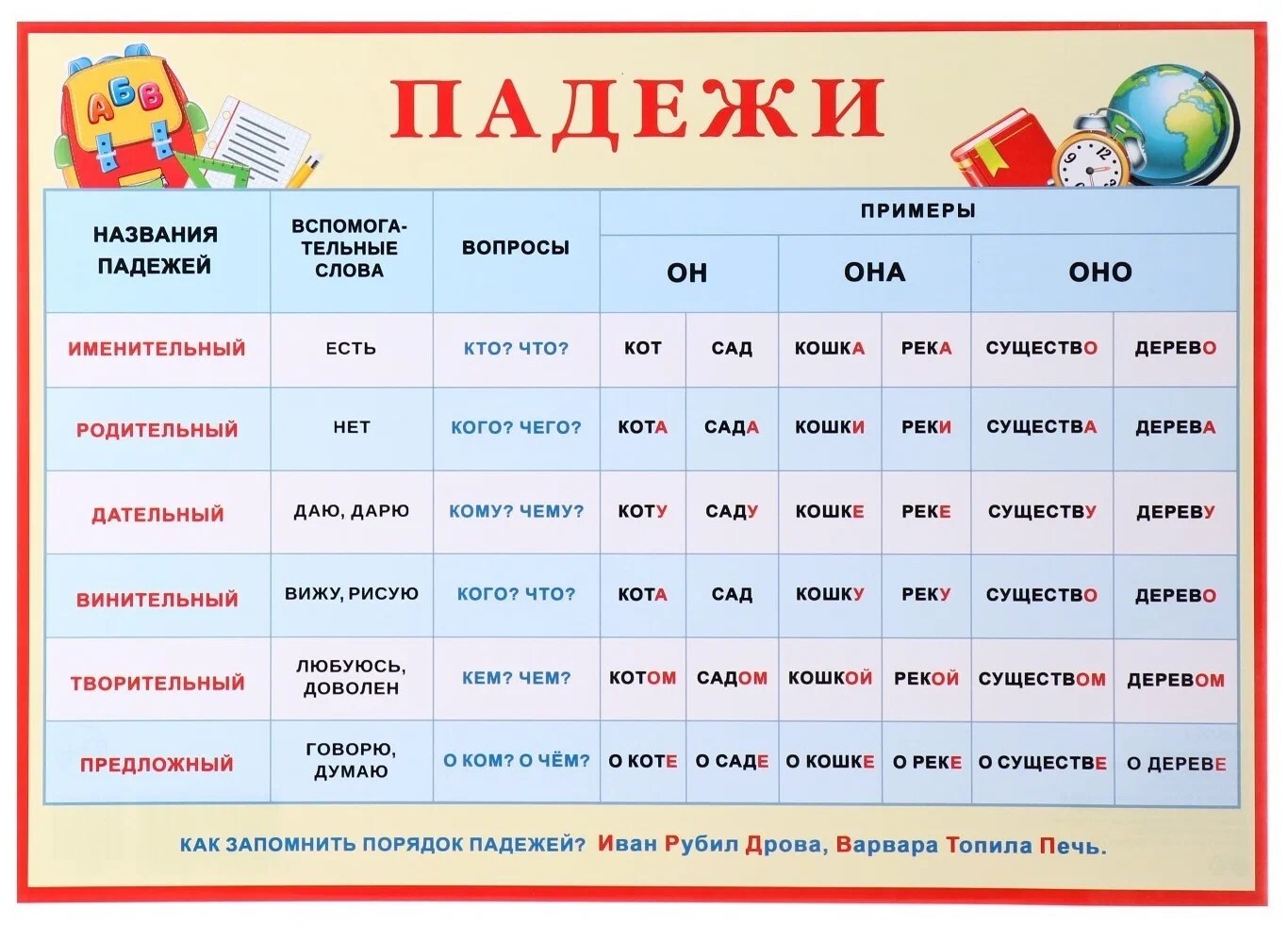Плакат"ПАДЕЖИ"