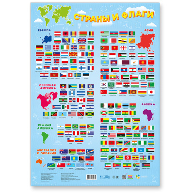 Яркий лакированный плакат "Cтраны и флаги" для изучения географии обязательно понравится ребёнку.