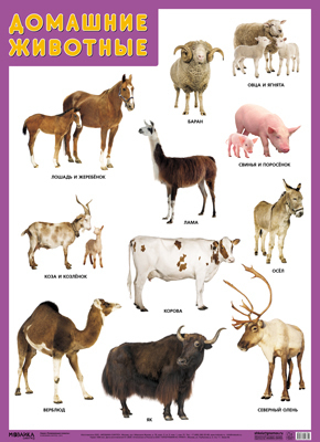 На этом плакате наряду со знакомыми детям домашними животными, такими как: корова, лошадь, овца, представлены верблюд, лама, як и северный олень. Великолепные яркие фотографии обязательно заинтересуют ребят.