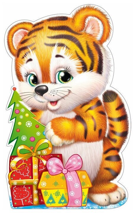 Плакат Ф-13989сф Плакат вырубной А3 Тигренок новогодний (блестки в лаке) И