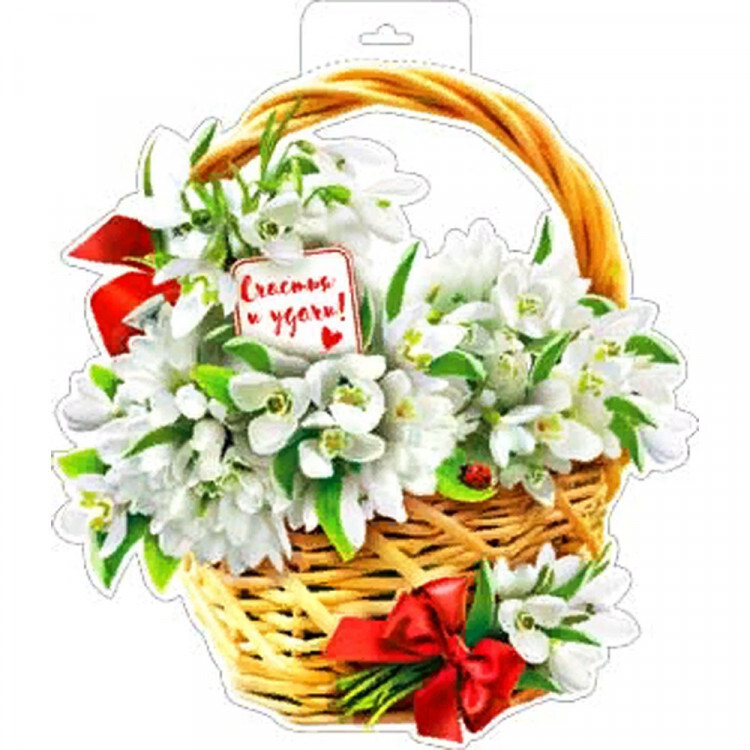 Корзина с подснежниками. 350х250мм. Отделка: Европодвес,полноцветный оборот,плотный картон