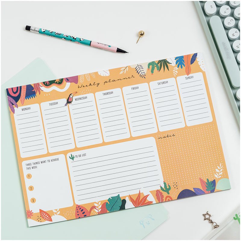 Планер на неделю MESHU. Размер - 297×210 мм. Бумага офсетная 80 г/м2. 30 листов с оригинальным дизайном. Недатированный. На склейке. Индивидуальная упаковка.