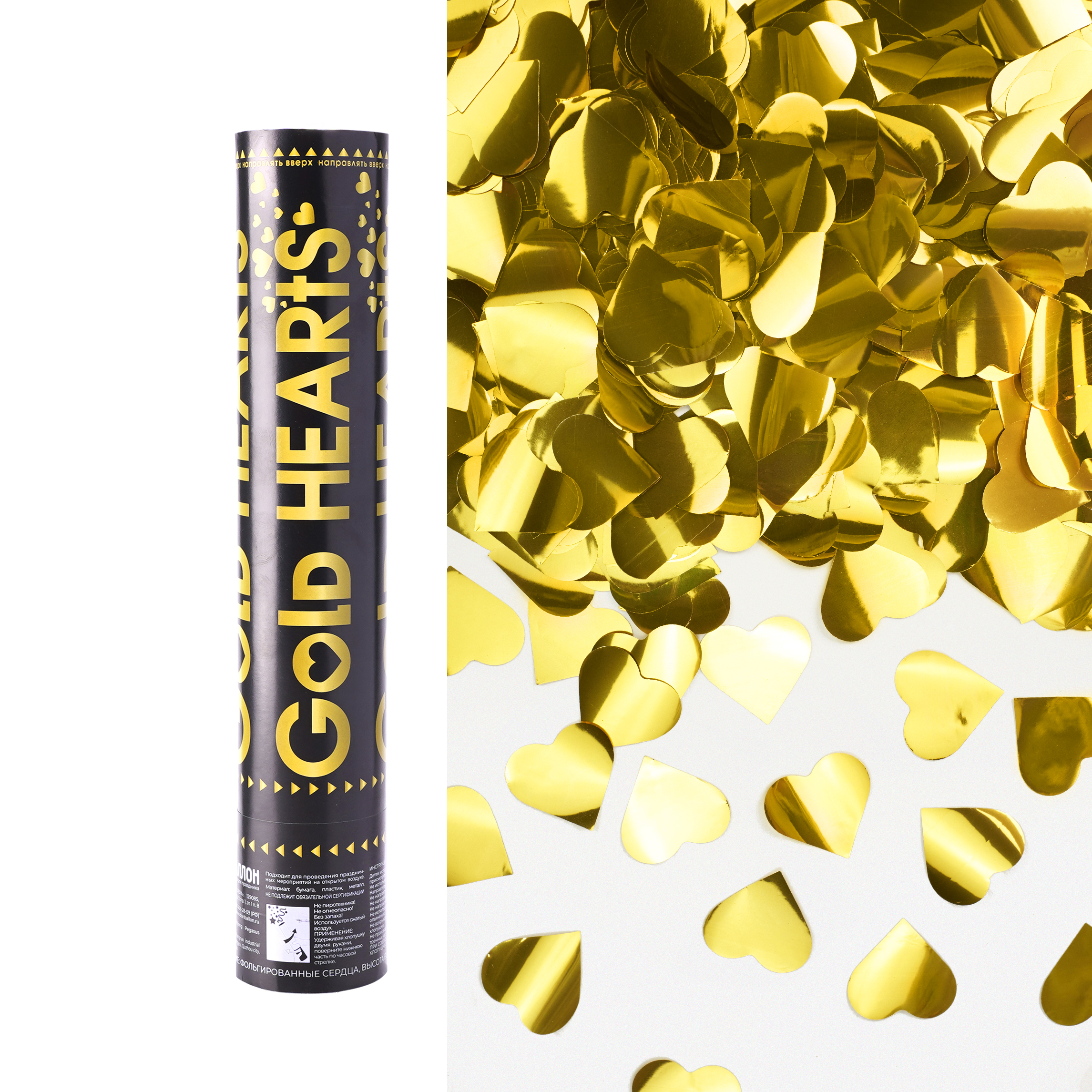 Пневмохлопушка (12/30 см), Сердца фольга, Золото, Металлик, 1 шт.