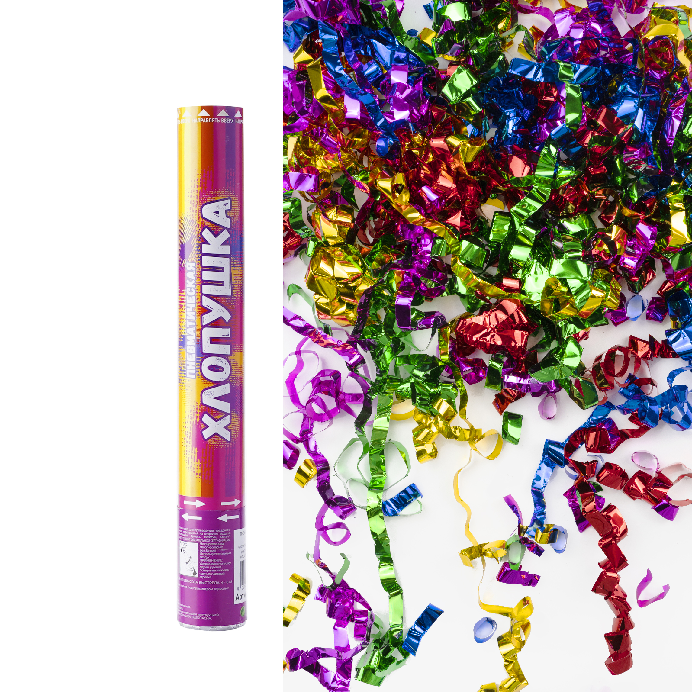 Пневмохлопушка с красочным конфетти сделает любой праздник ярче, а фото- и видео-съемку еще более эффектной